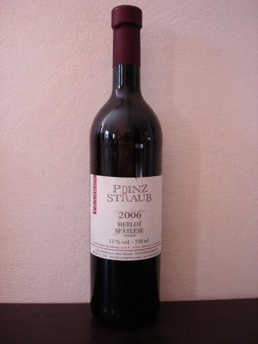 dunkler, gefälliger Rotwein mit Duft nach Waldbeeren. Bordeauxflasche